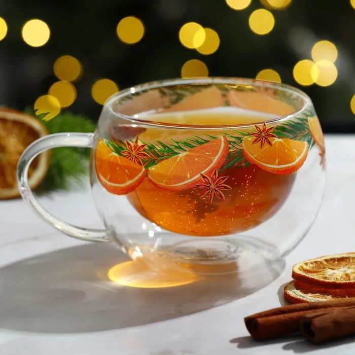 - Оригинальный дизайн: прозрачная кружка с двойными стенками выглядит стильно и празднично.
