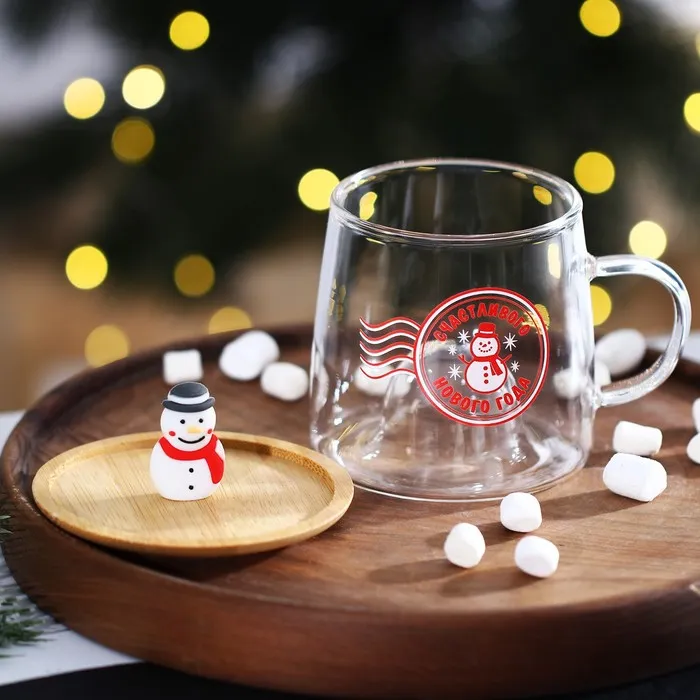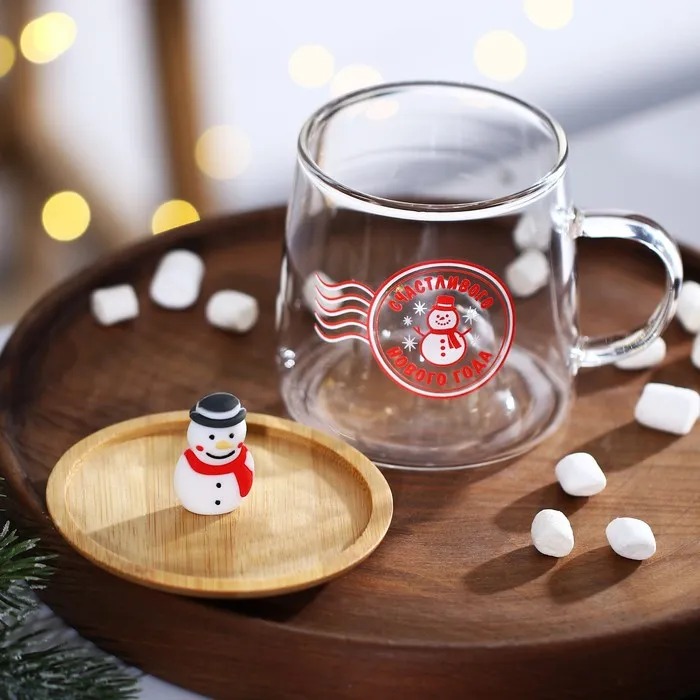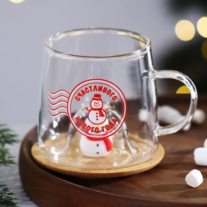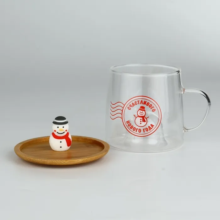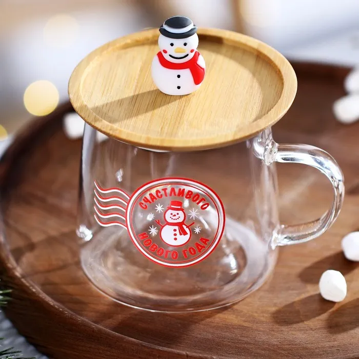 Кружка новогодняя стеклянная с крышкой «Счастливого нового года», 350 мл — Характеристики