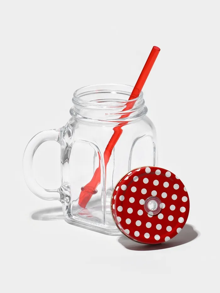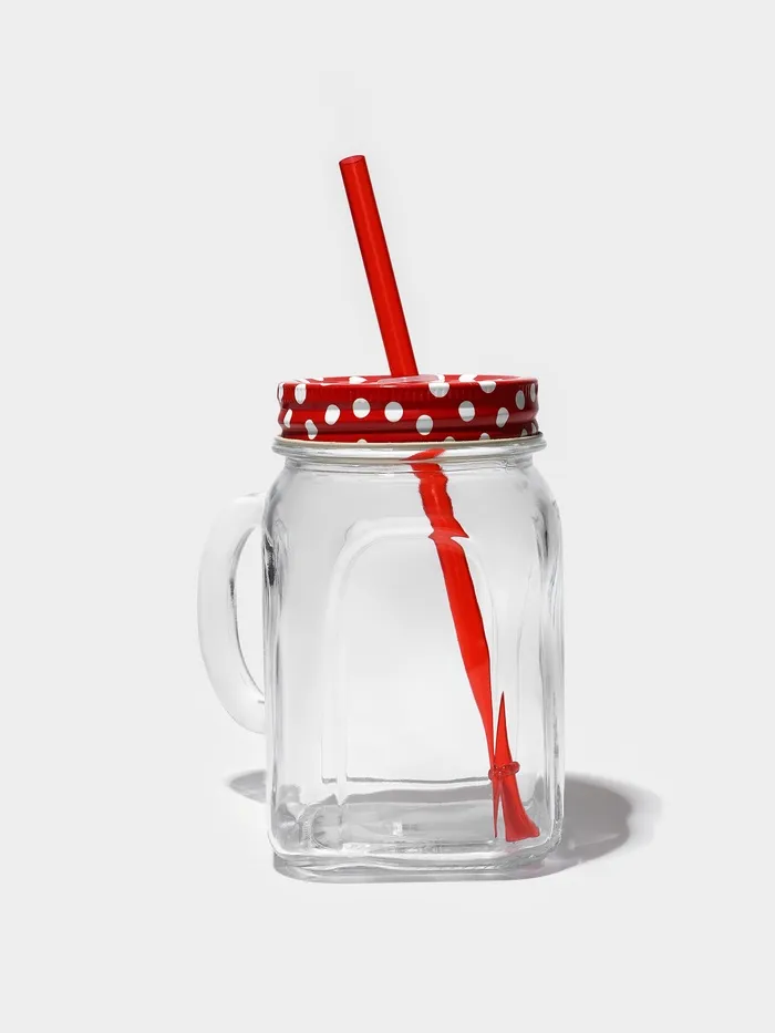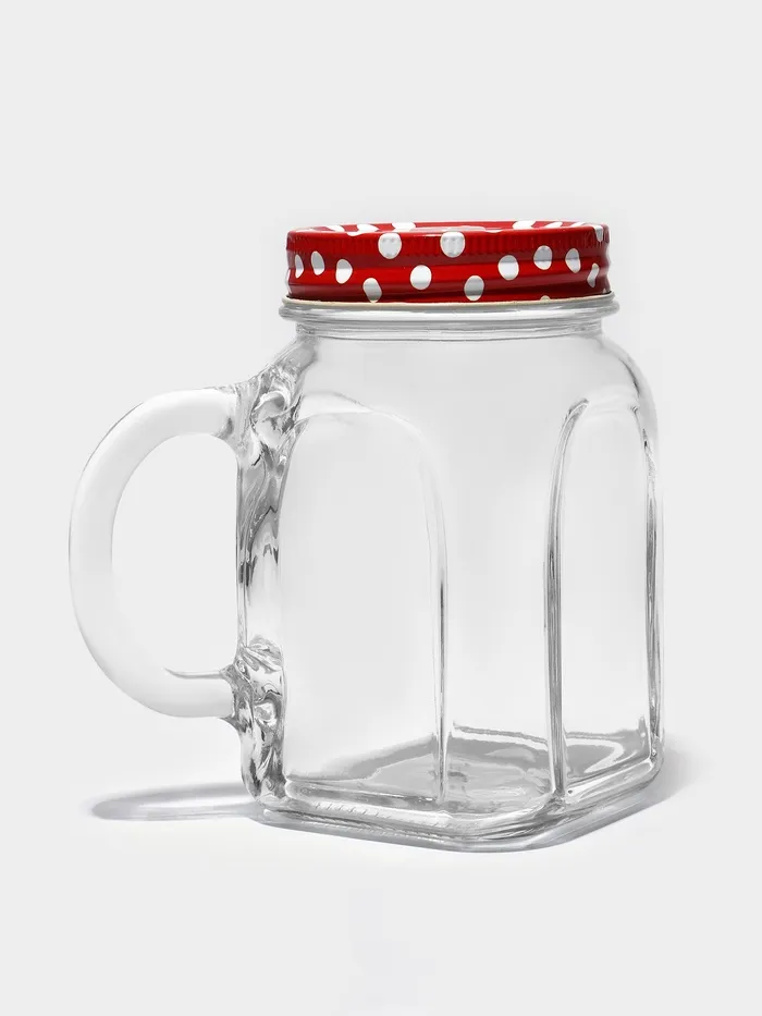 Кружка Paşabahçe Homemade, 450 мл, с красной крышкой, стекло, прозрачная — Характеристики