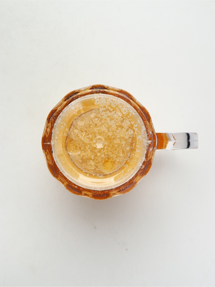 Охлаждающая кружка изготовлена из прозрачного пластика. Стенки кружки двойные и граненые, между стенками находится специальная охлаждающая жидкость. Она хорошо накапливает температуру, а потом отдает ее.