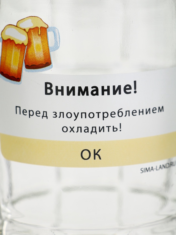 Кружка пивная с надписью «Внимание!», 500 мл, 18+ — Характеристики