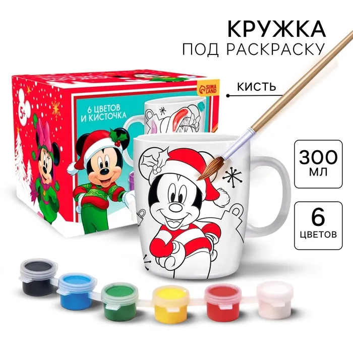 Кружка под раскраску на новый год «Микки Маус и его друзья», 300 мл, набор для творчества — Характеристики