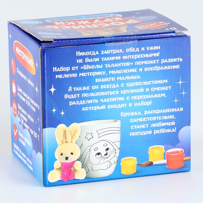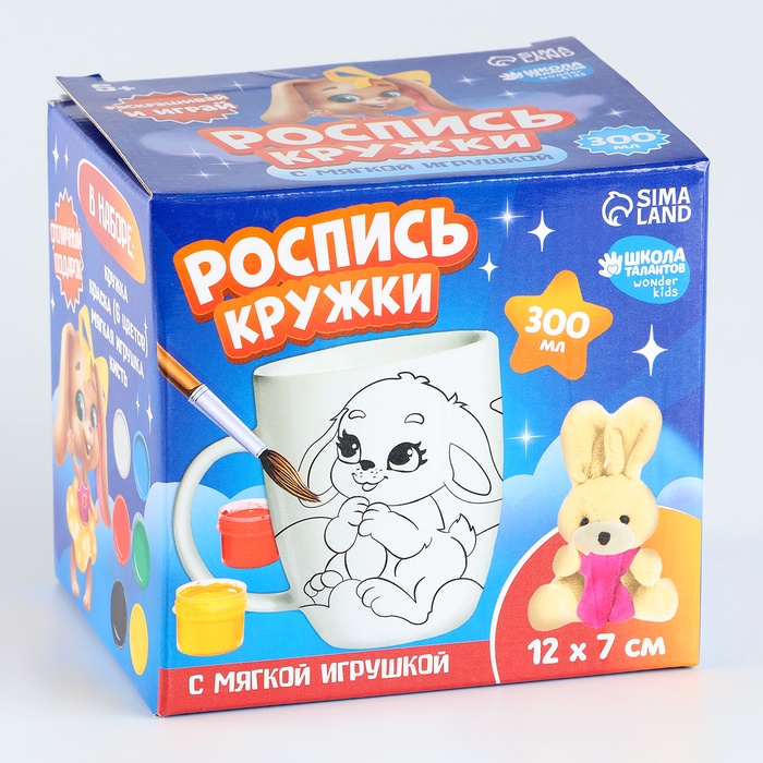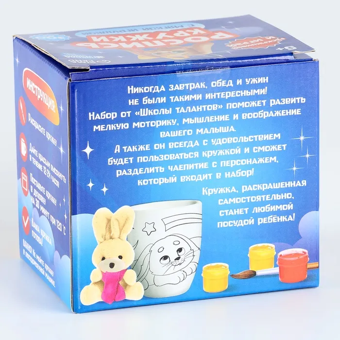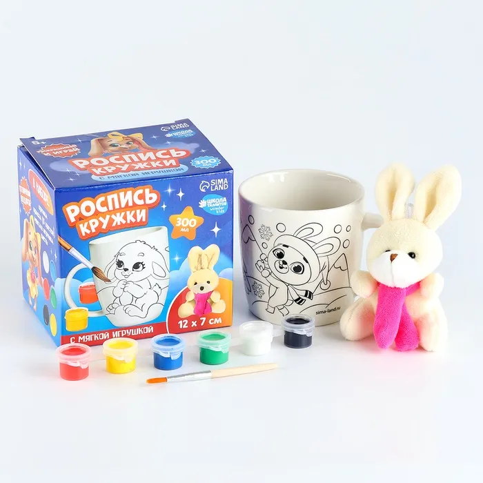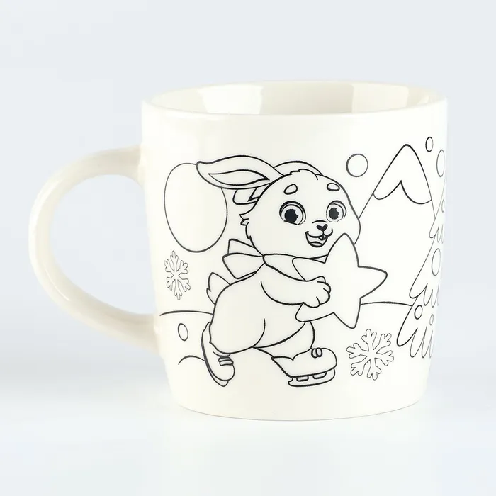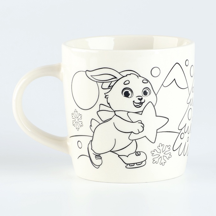 Кружка под раскраску на новый год «Зайки» с мягкой игрушкой, 300 мл, набор для творчества — Характеристики