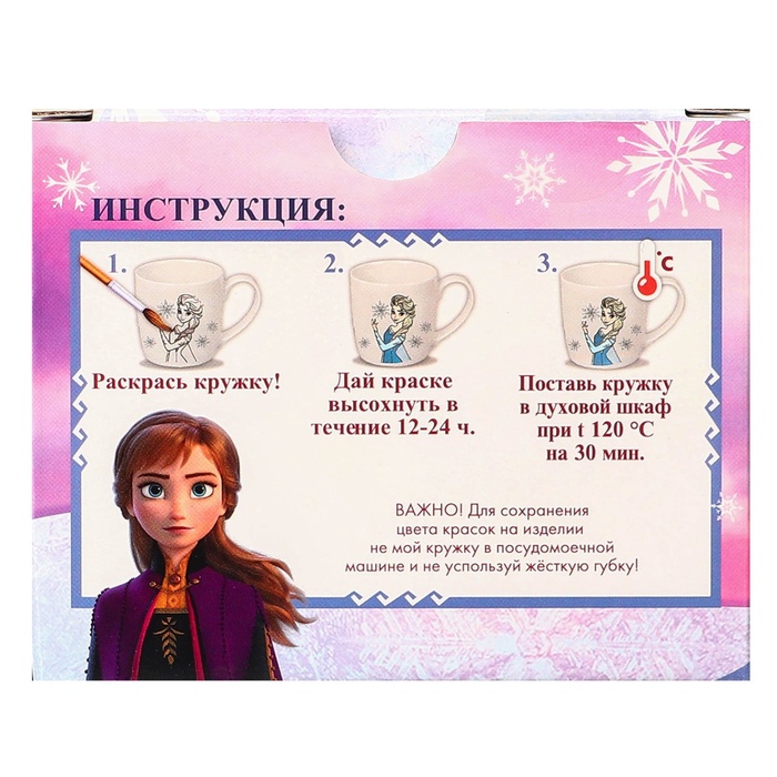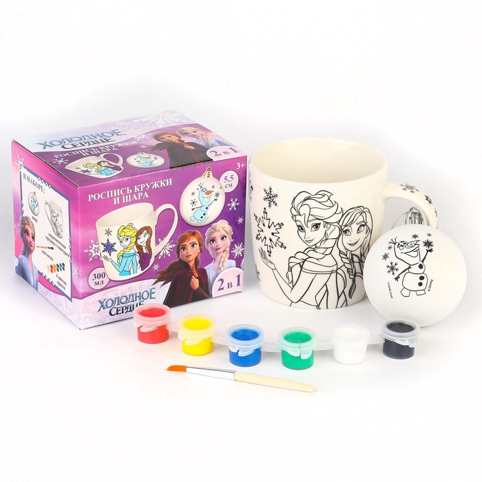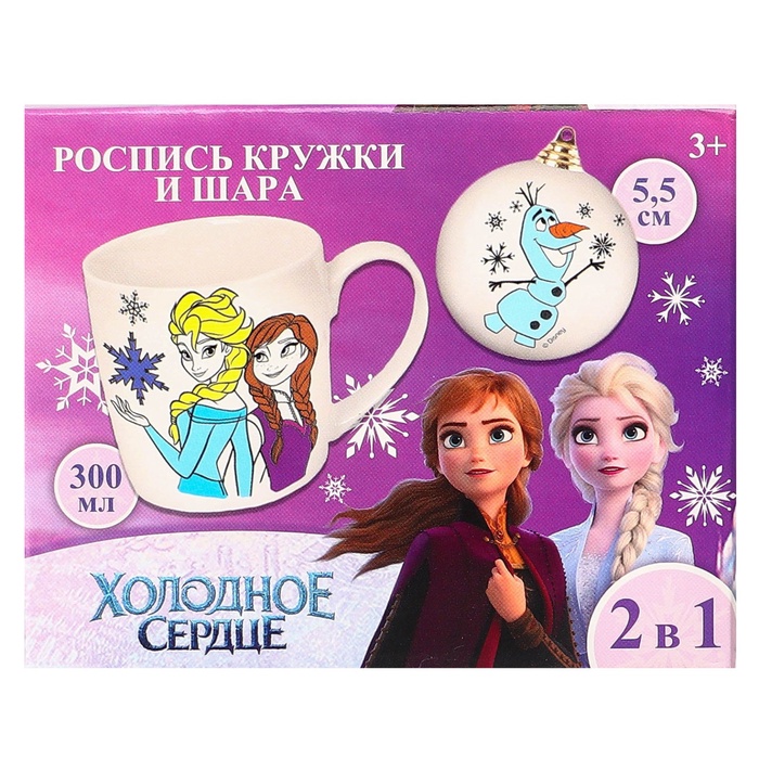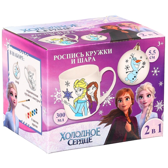 Кружка под раскраску с ёлочным шаром на новый год «Эльза и Анна», 300 мл, набор для творчества, Холодное сердце — Характеристики