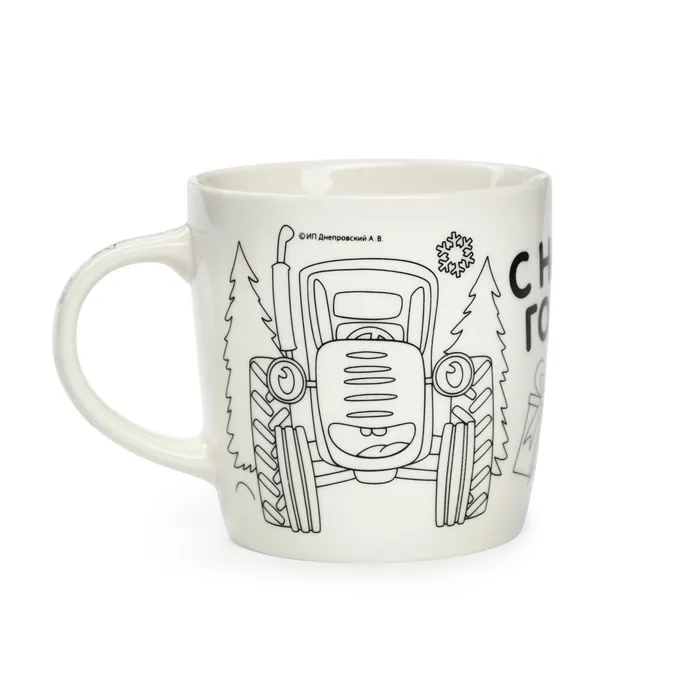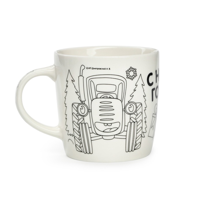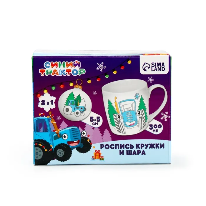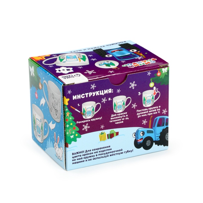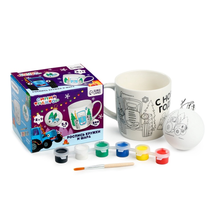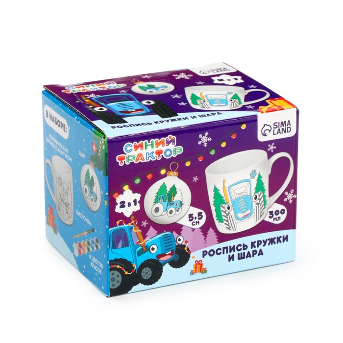 Кружка под раскраску с ёлочным шаром на новый год «Синий трактор», 300 мл, набор для творчества — Характеристики
