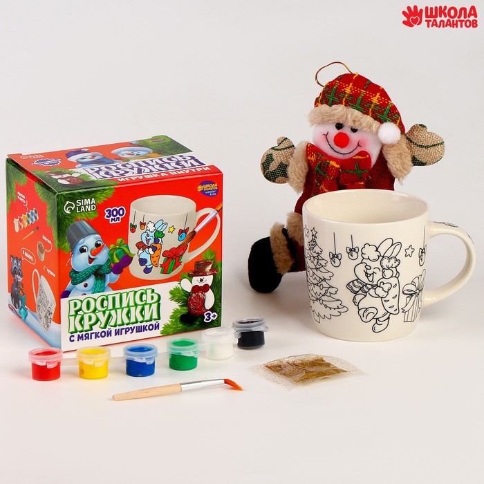 Кружка под раскраску с мягкой игрушкой на новый год «Снеговик», 300 мл, набор для творчества — Характеристики