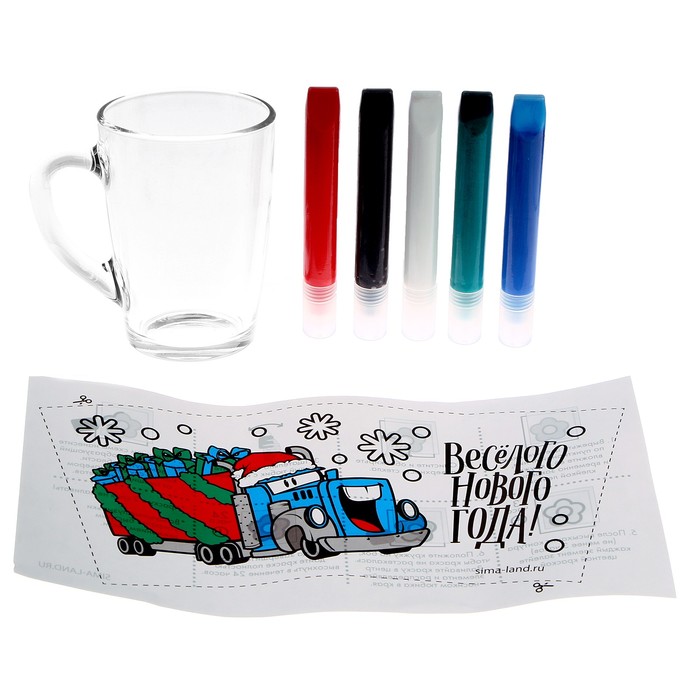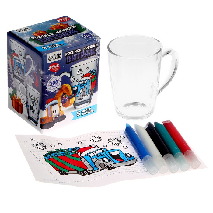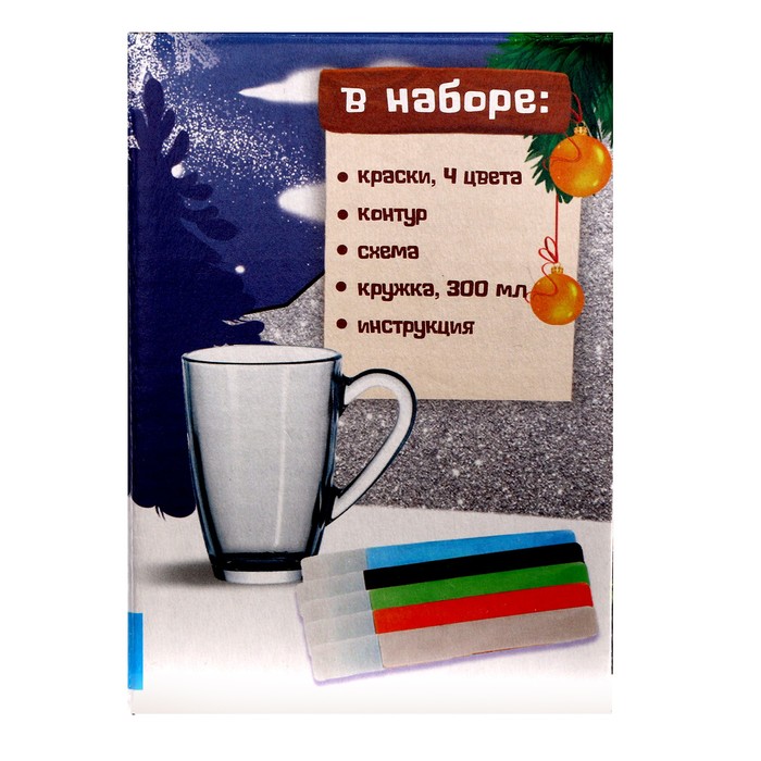 Кружка под раскраску витражными красками на новый год «В ожидании подарков», набор для творчества — Характеристики