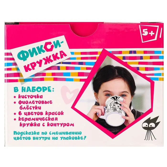 На кружке нанесены контуры будущего изображения, которые крохе предстоит заполнить акриловыми красками. После высыхания они хорошо держатся на стеклянной поверхности, так что изделие можно будет мочить и даже разогревать в микроволновой печи.