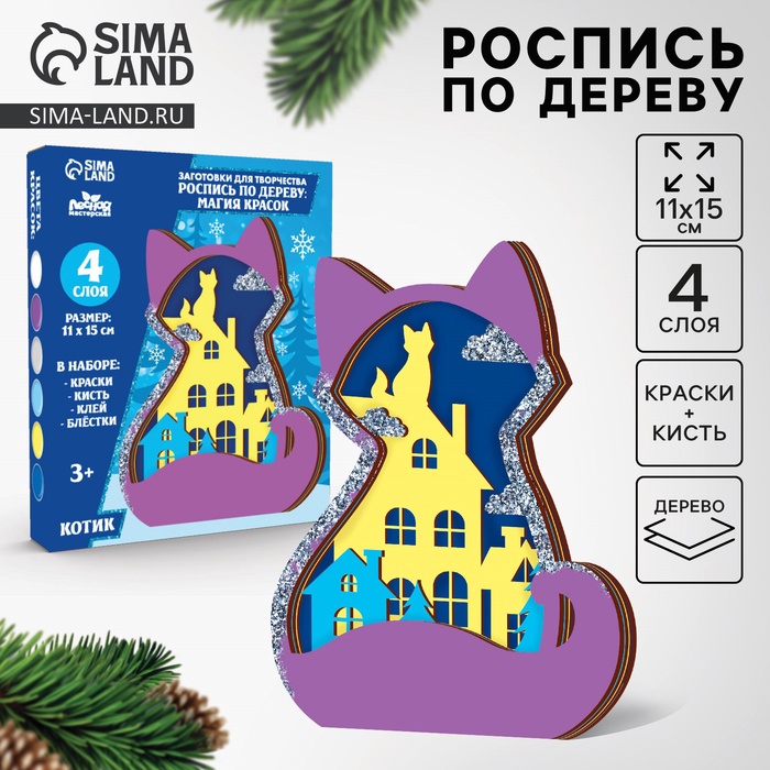 Роспись по дереву «Новый год! Котик»