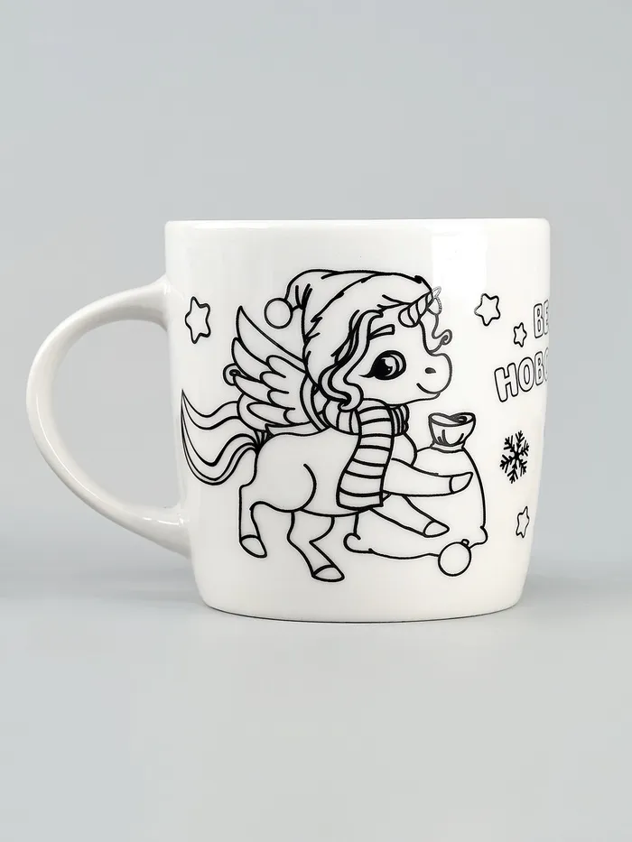 Кружка под роспись «Веселого Нового года» Единорог и Снегурочка 300 мл — Характеристики