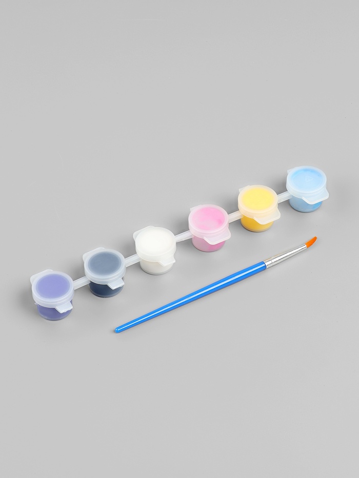 - акриловые краски – 6 шт (розовая, желтая, белая, голубая, черная, фиолетовая)