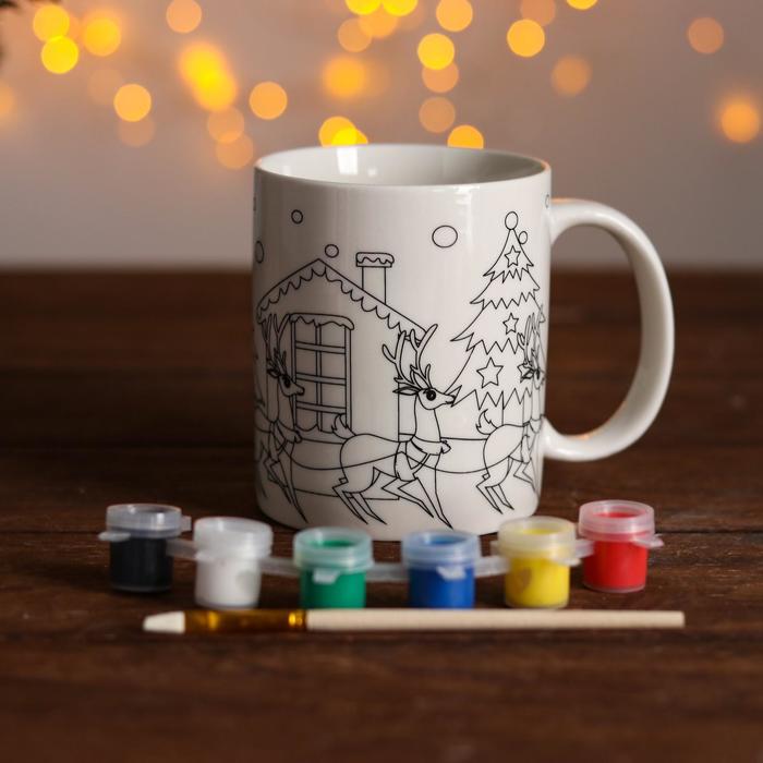 Кружка под роспис«Новогодняя», краска 6 цв по 2 мл, кисть — Характеристики