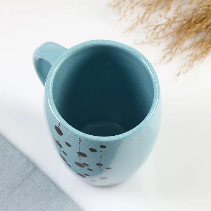 Эта очаровательная кружка объемом 400 мл станет прекрасным дополнением к вашему сервизу и подарит ощущение праздника каждый день. Нежный голубой цвет и оригинальный абстрактный рисунок в горошек создают легкое и радостное настроение. Изготовленная из высококачественной керамики, она идеально подходит для чая, кофе или других любимых напитков.
