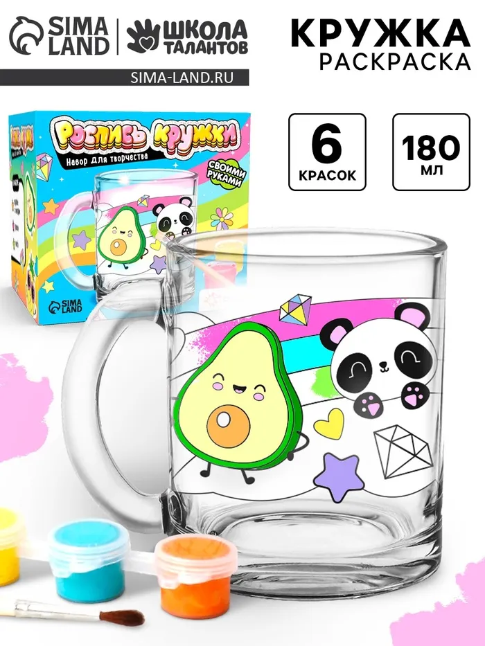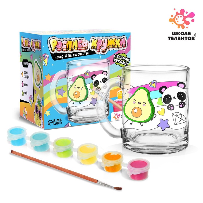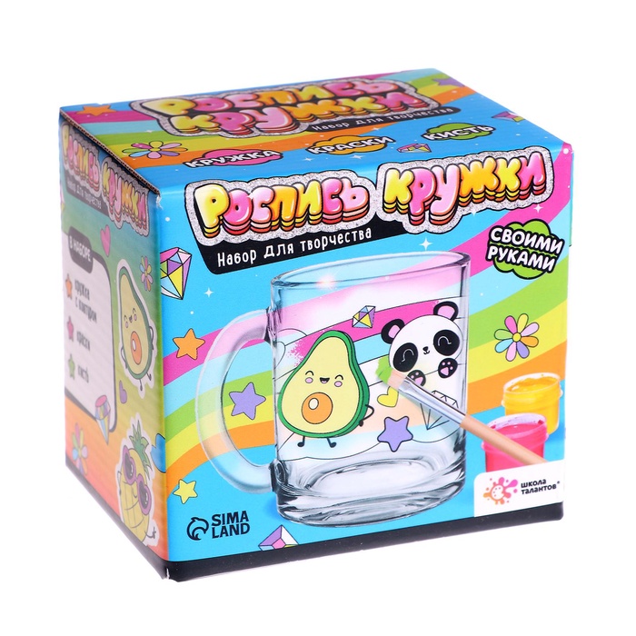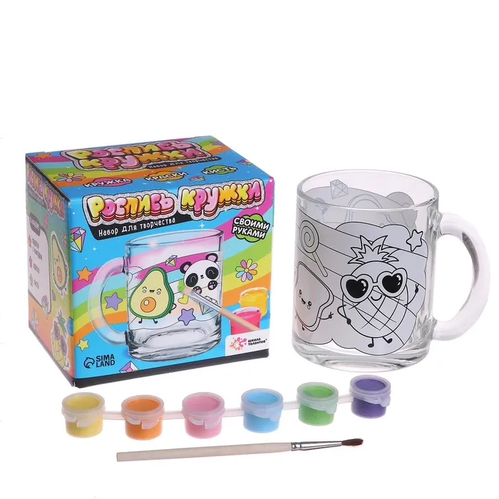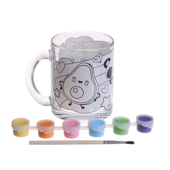 В наборе есть всё необходимое для создания уникальной кружки. А контур рисунка уже нанесён на стекло, чтобы юному художнику было проще.