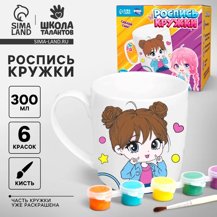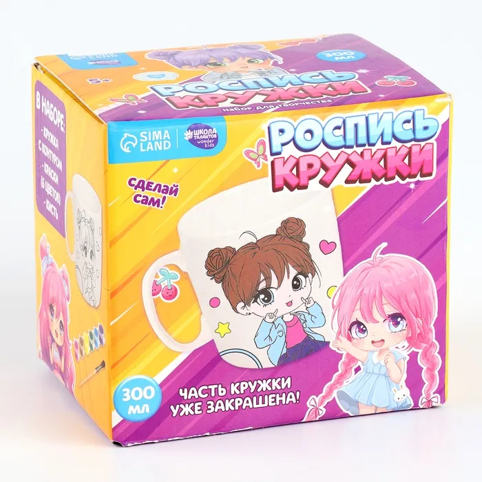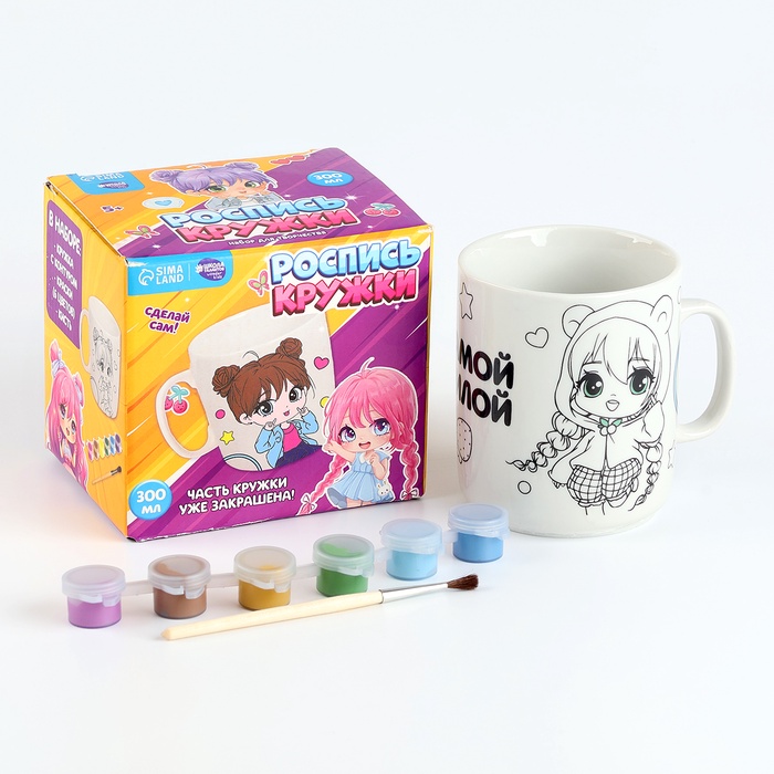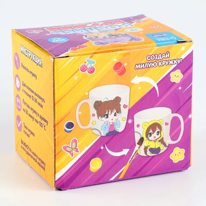 Кружка раскраска под роспись с частичным заполнением «Две подружки», набор для творчества — Характеристики
