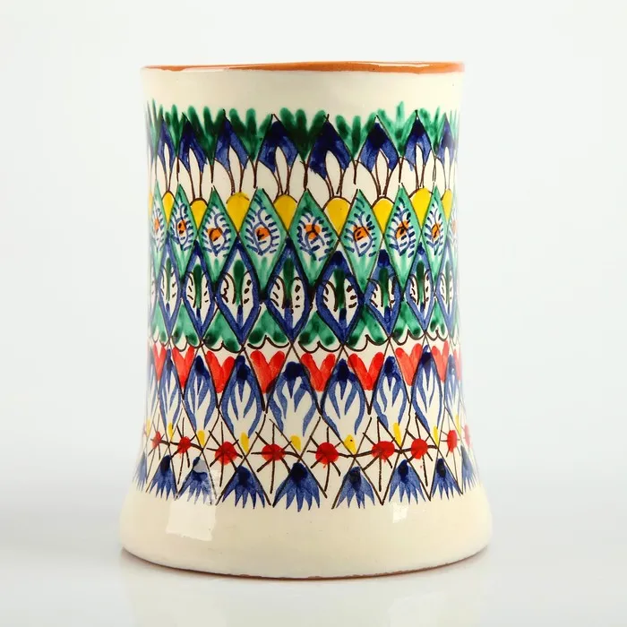 - Ручная роспись: каждый узор выполнен вручную, что делает кружку неповторимой