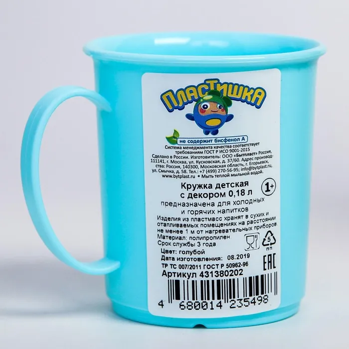 Кружка с декором 180 мл, детская, пластиковая, МИКС — Характеристики