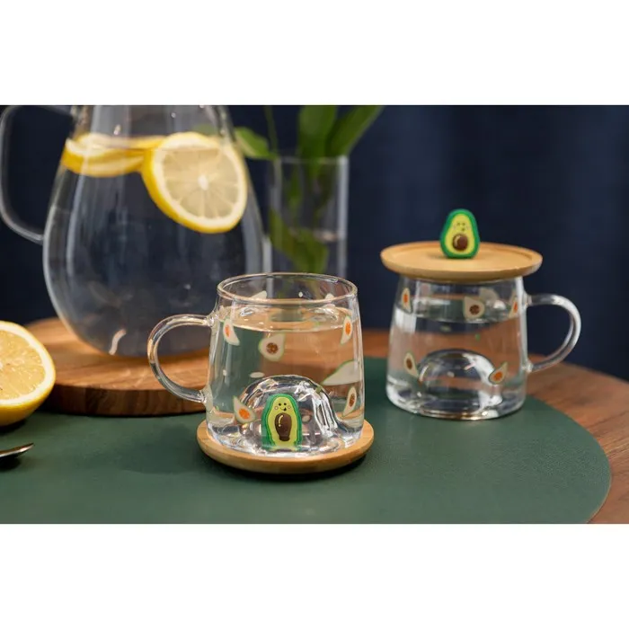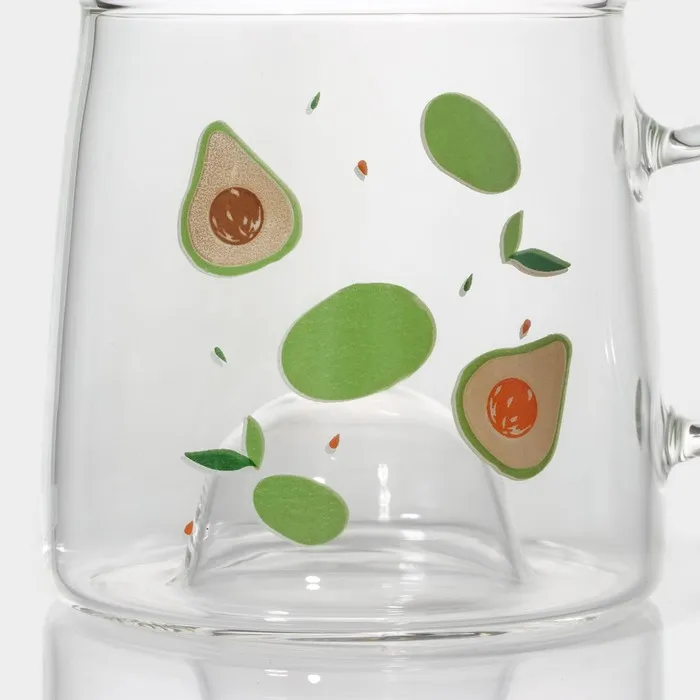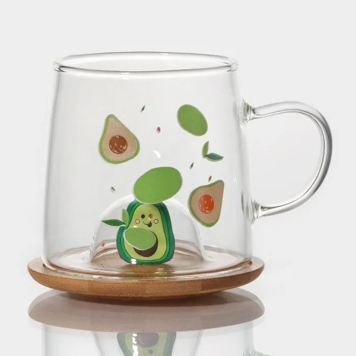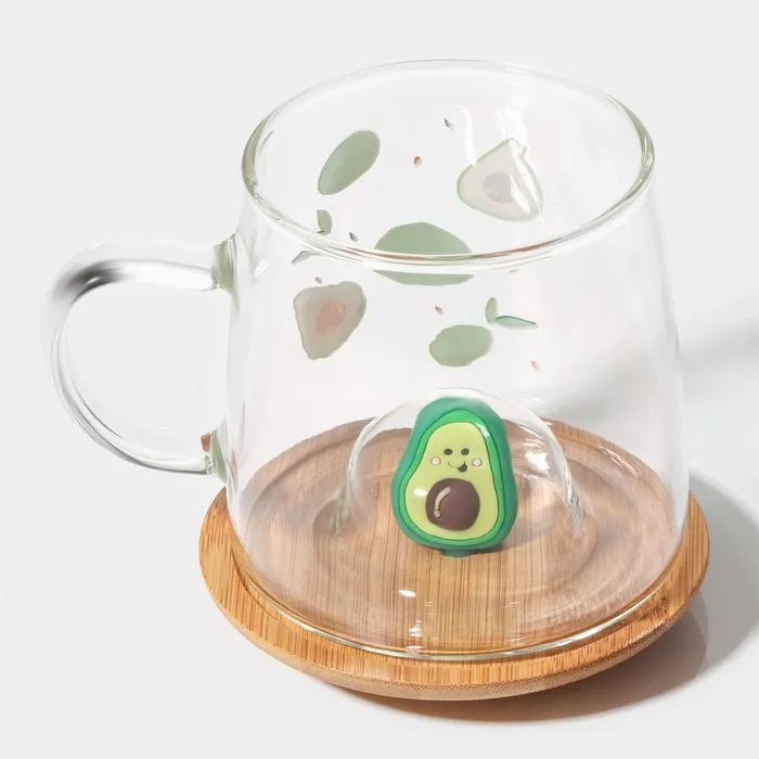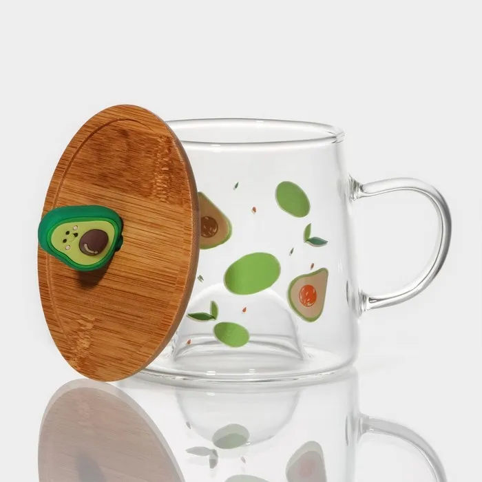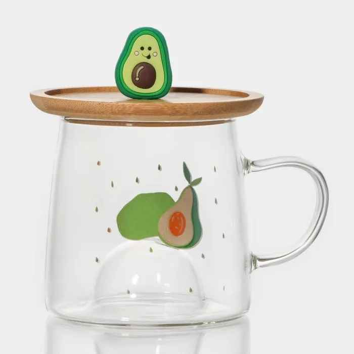 Кружка с деревянной крышкой «Авокадо», 350 мл, стекло, рисунок МИКС — Характеристики