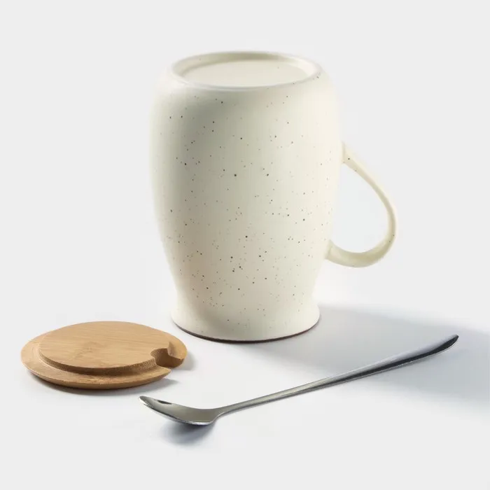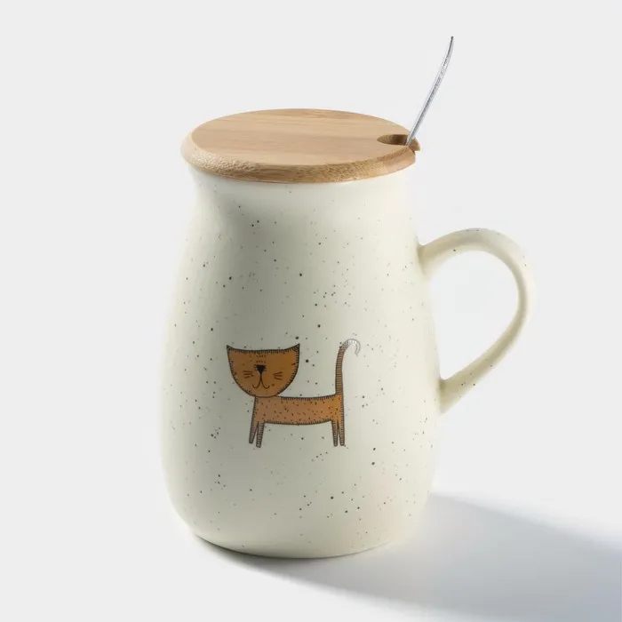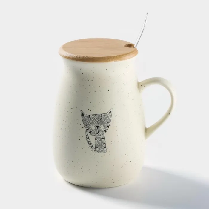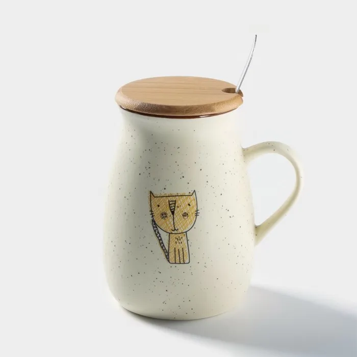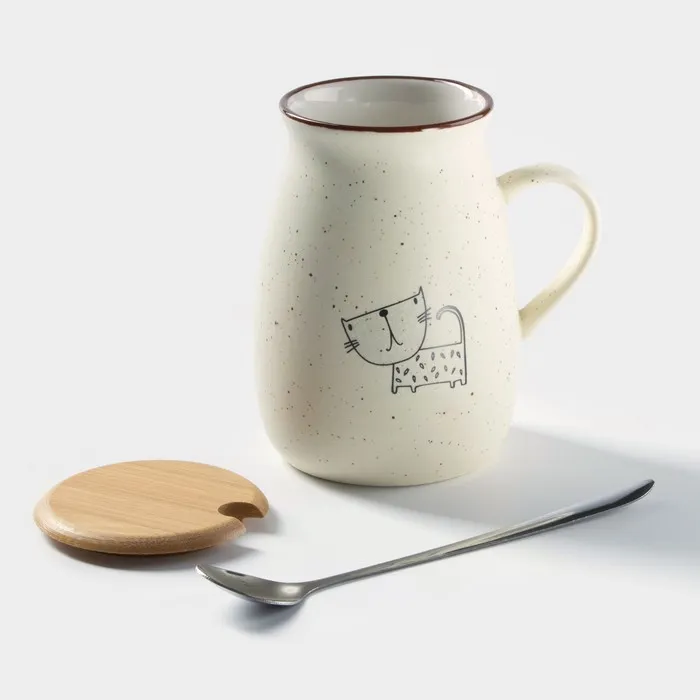 Кружка с деревянной крышкой и ложкой «Пэтти», 350 мл, керамика, рисунок МИКС — Характеристики