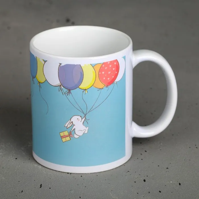 Кружка изготовлена из керамики. Рисунок нанесён методом сублимации, при котором краска проникает в верхний слой изделия, поэтому изображение получается стойким.
