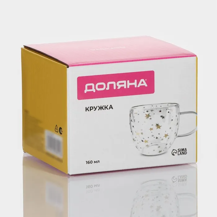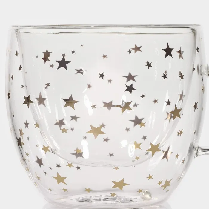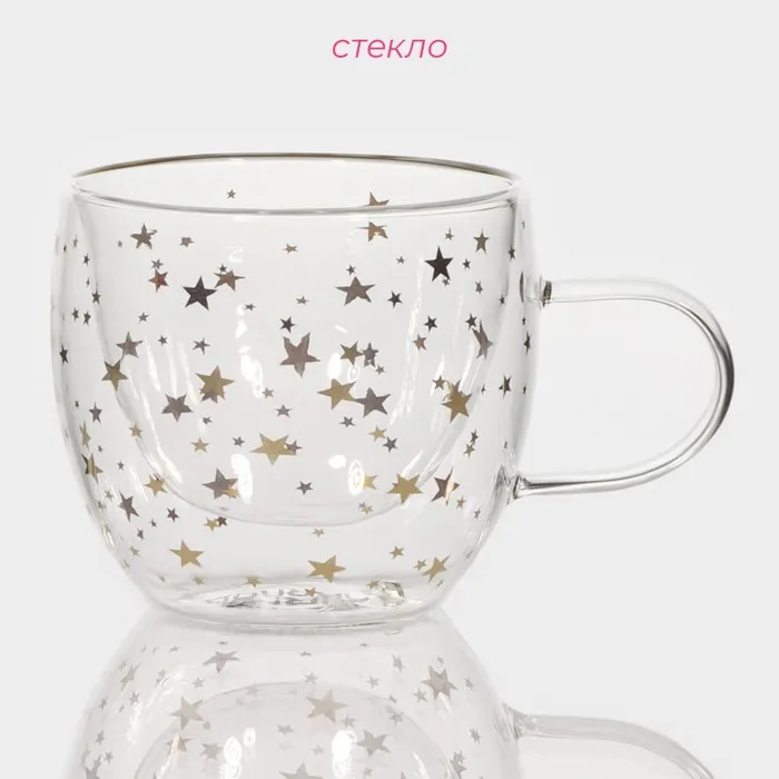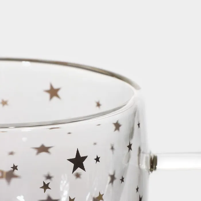 Кружка с двойными стенками Доляна «Дуо. Звёзды», 160 мл, 12.5×9×7.5 см, стекло, прозрачная — Характеристики