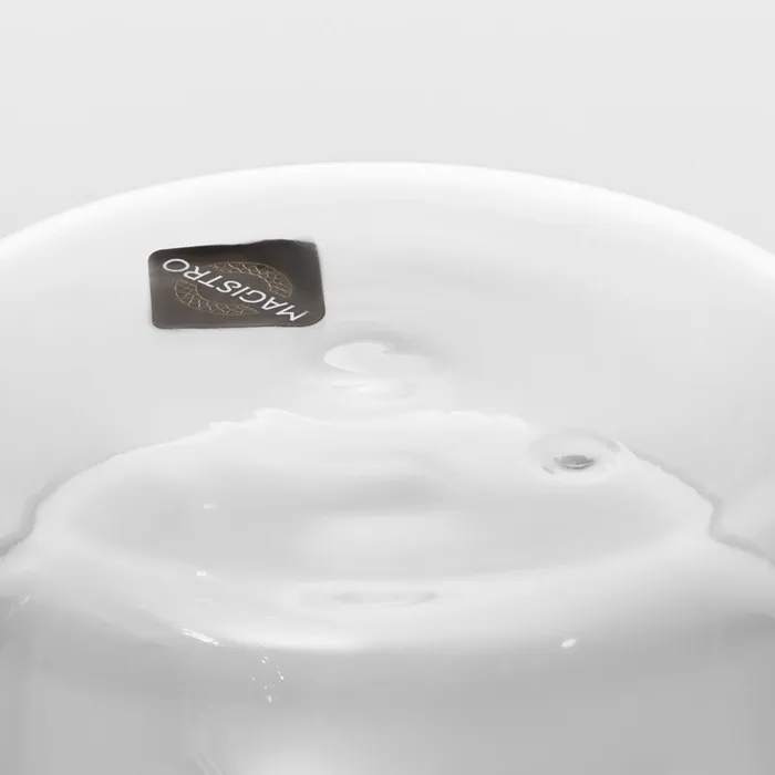 Вся посуда с двойными стенками делается вручную и имеет на дне технологическое отверстие, через которое и выдувается изделие. Далее отверстие заклеивается – это особенность, которая не является браком. Посуду нельзя использовать в ПММ и СВЧ-печи.