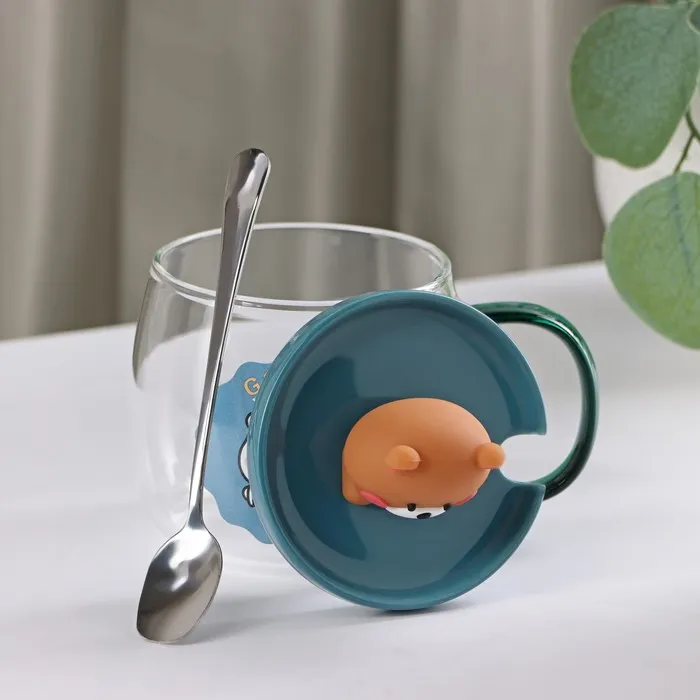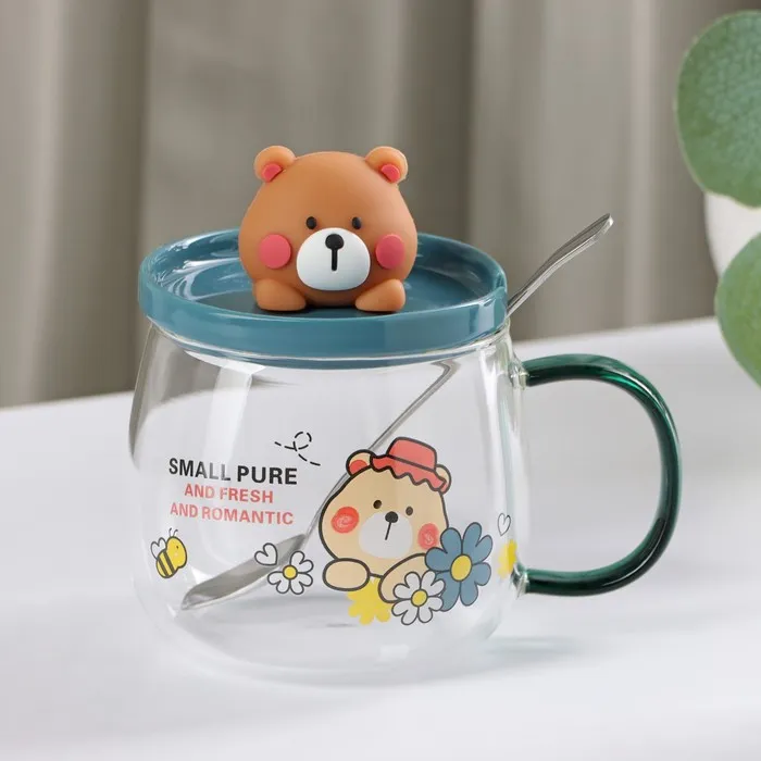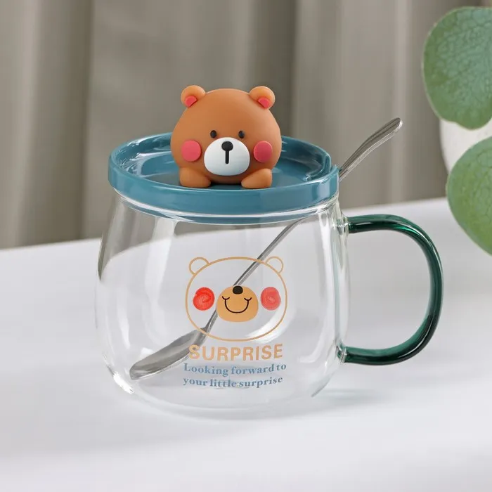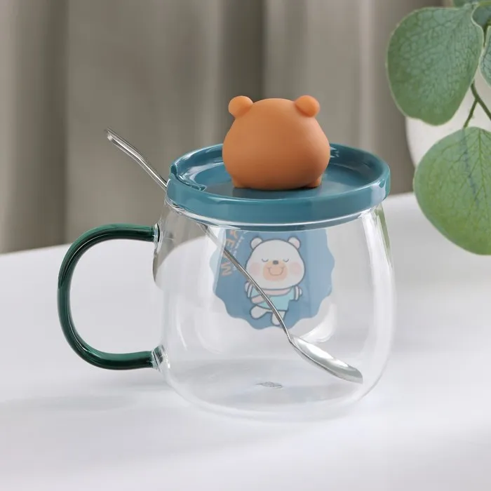 Кружка с керамической крышкой и ложкой «Тедди», 350 мл, стекло — Характеристики