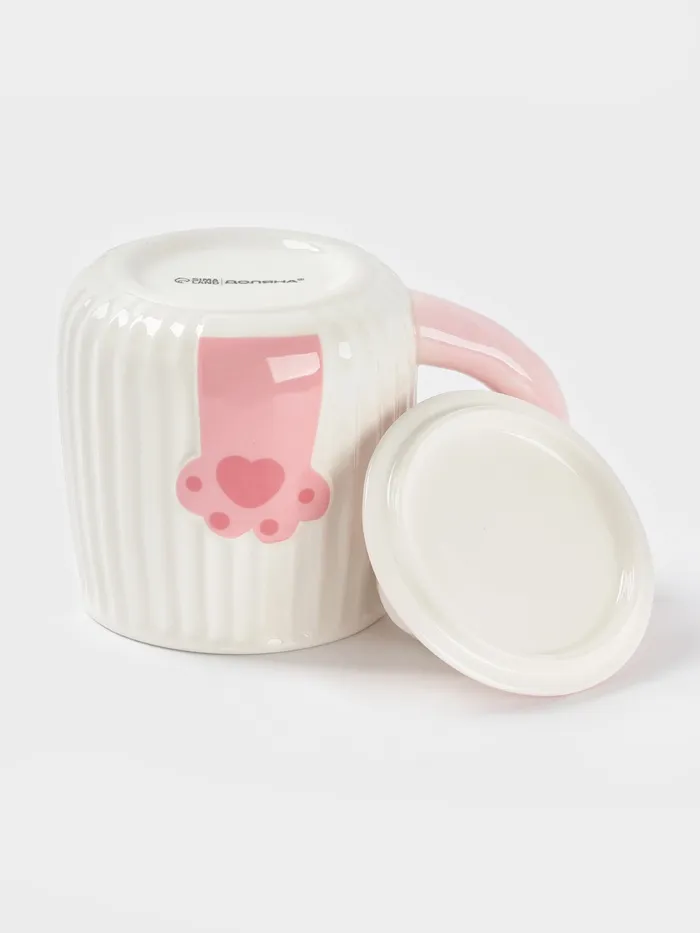 Наслаждайтесь горячим чаем или кофе в этой восхитительной розовой керамической кружке с крышкой! Объемом 450 мл, с очаровательным изображением котика на корпусе и милой фигуркой лапки на крышке, она станет вашим самым любимым аксессуаром. Идеальна для ежедневного использования, ведь ее можно безопасно греть в микроволновой печи и мыть в посудомоечной машине.