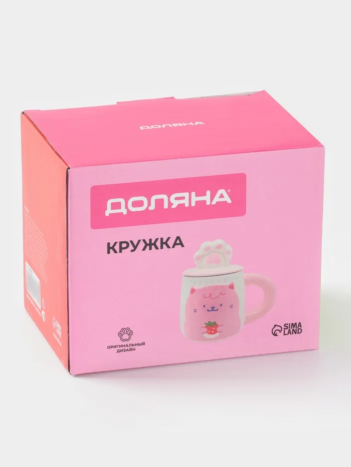 Кружка с крышкой Доляна «Лапочка», 450 мл, керамика, розовая — Характеристики
