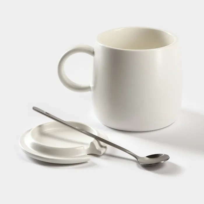 Кружка с крышкой и ложкой «Ангелок», 350 мл, керамика, белая — Характеристики