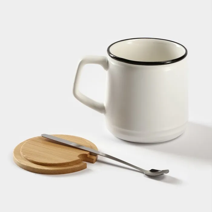Кружка с крышкой и ложкой Moon, 350 мл, керамика, белая — Характеристики