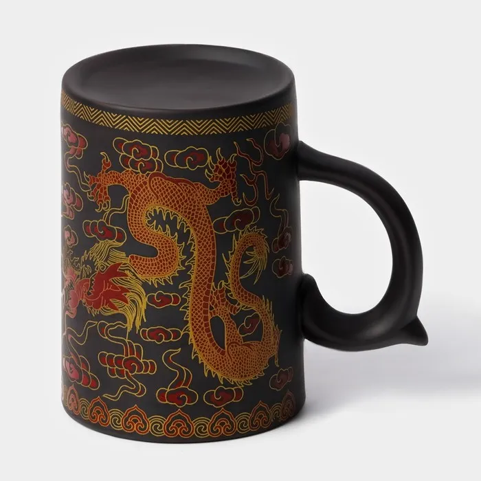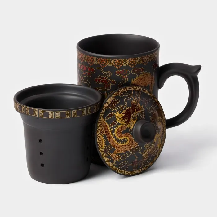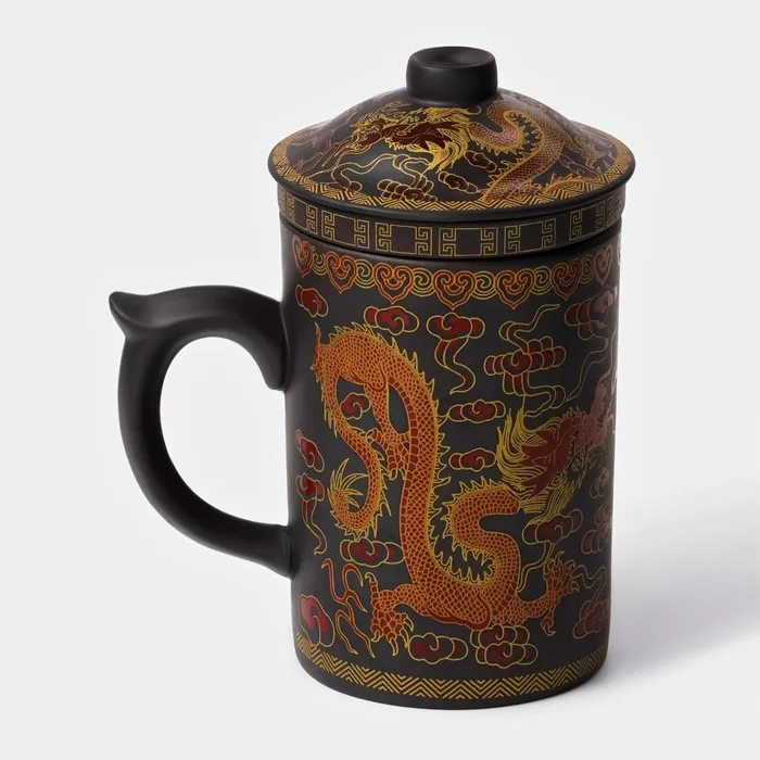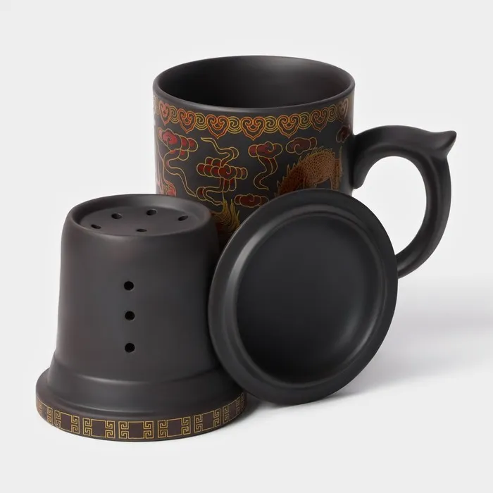 Кружка с крышкой и ситом «золотистое дракон», 350 мл, керамика — Характеристики