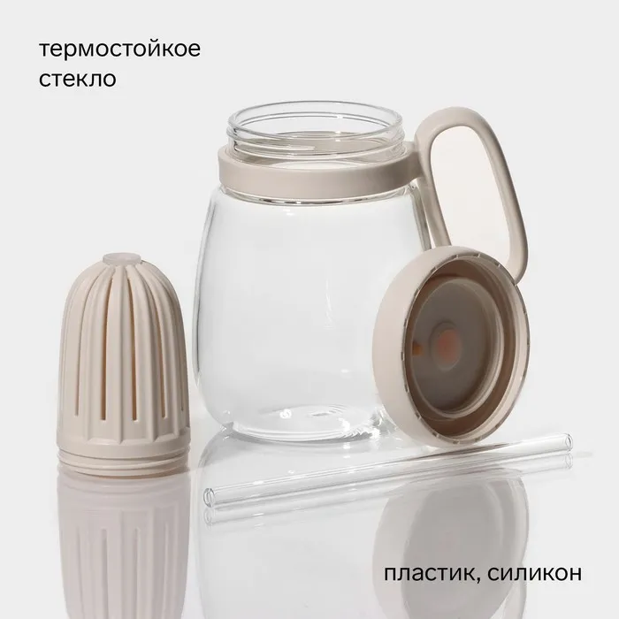 Банка с ручкой, крышкой и трубочкой очень удобна, потому что ее плотные стенки позволяют сохранять температуру напитка, она не такая хрупкая, как стакан.