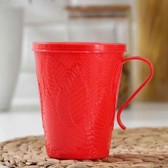 Кружка с крышкой «Листья», 400 мл, 11.5×8.5×11 см, пластик, красная — Характеристики