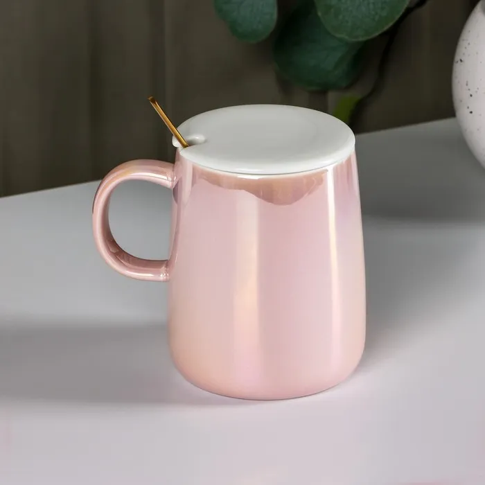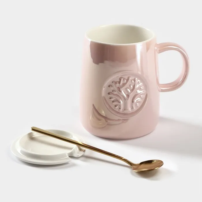 Кружка с ложкой «Древо», 380 мл, керамика, розовая