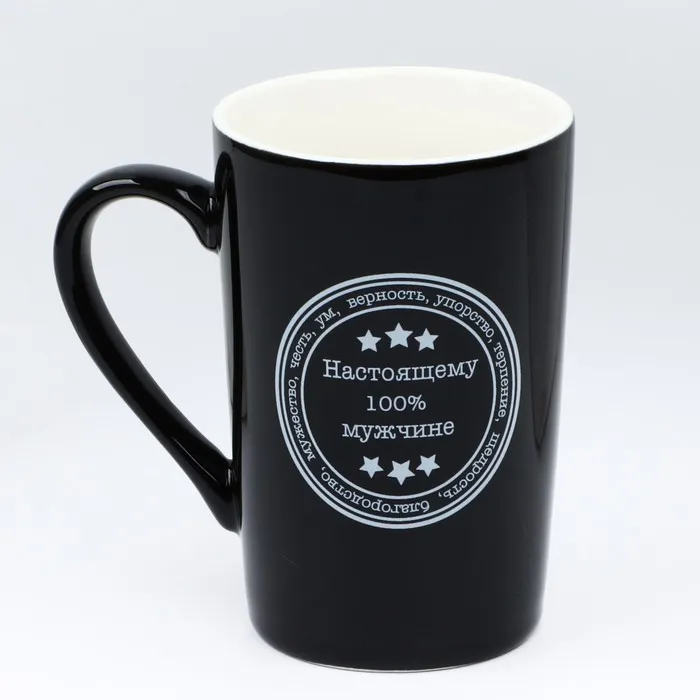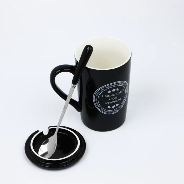 Кружка с ложкой и крышкой «Настоящему 100% мужчине», 420 мл, чёрная — Характеристики