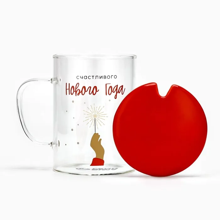 Кружка с ложкой и крышкой стеклянная «Счастливого Нового года», 470 мл — Характеристики