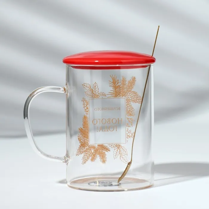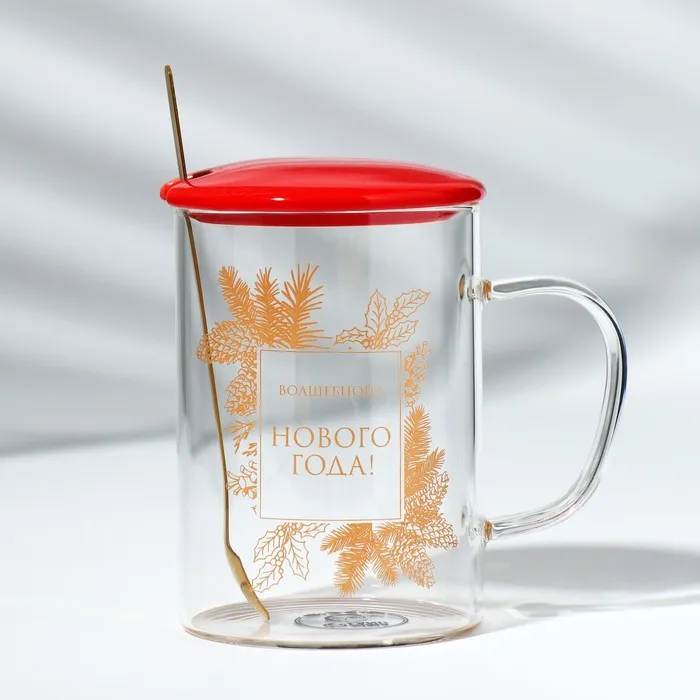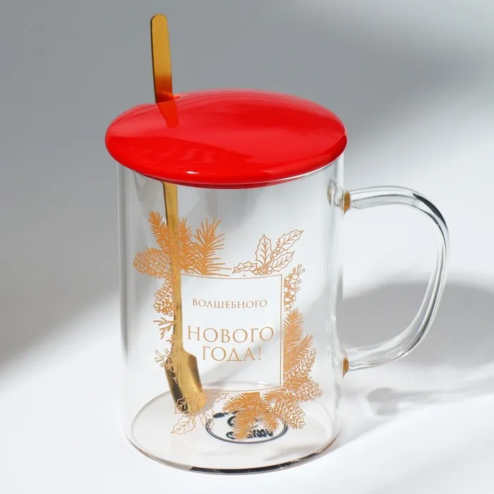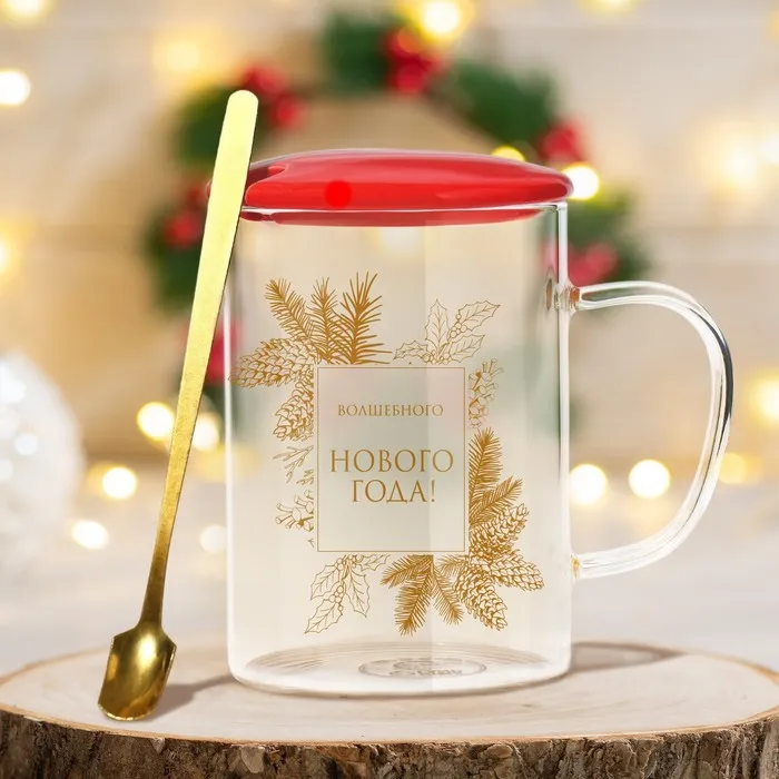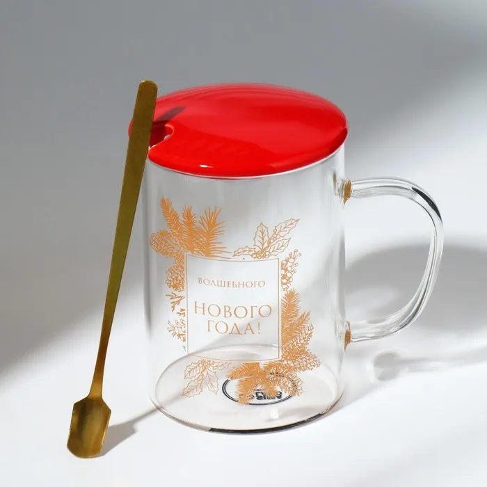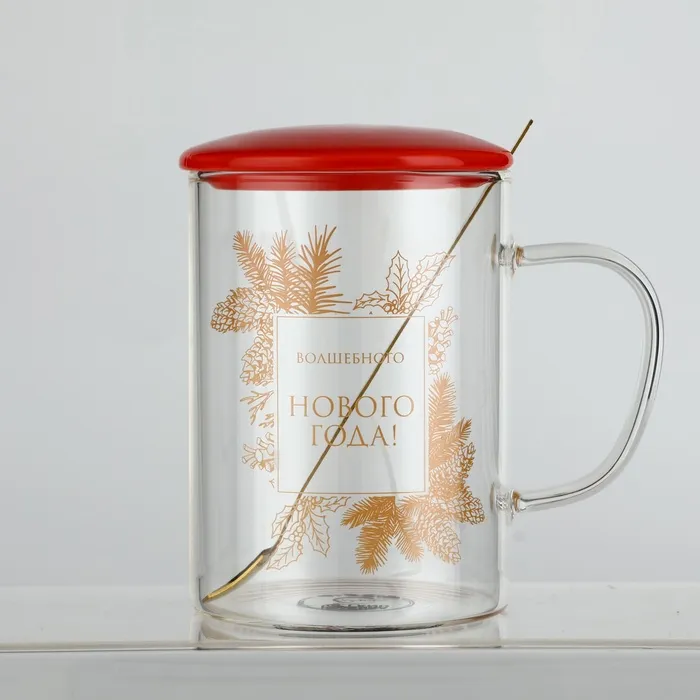 Кружка с ложкой и крышкой стеклянная «Волшебного нового года», 470 мл — Характеристики