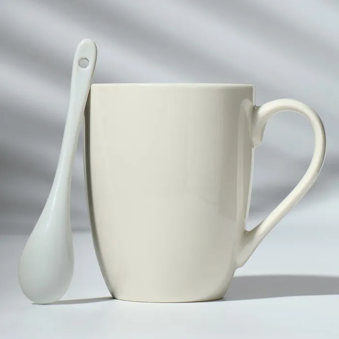 Керамическая кружка с ложкой «Начни день с улыбки» объёмом 310 мл станет прекрасным подарком.
