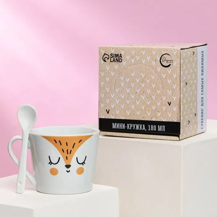 Керамическая кружка с ложкой «Лисичка» объёмом 180 мл станет прекрасным подарком.