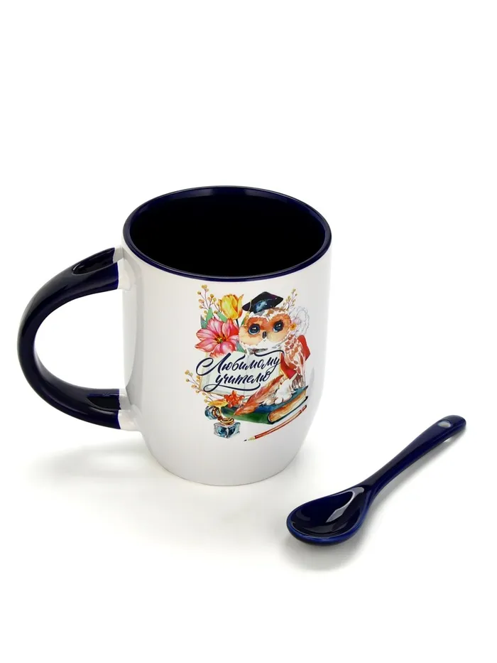 Кружка с ложкой керамическая «Любимому учителю», 350 мл — Характеристики