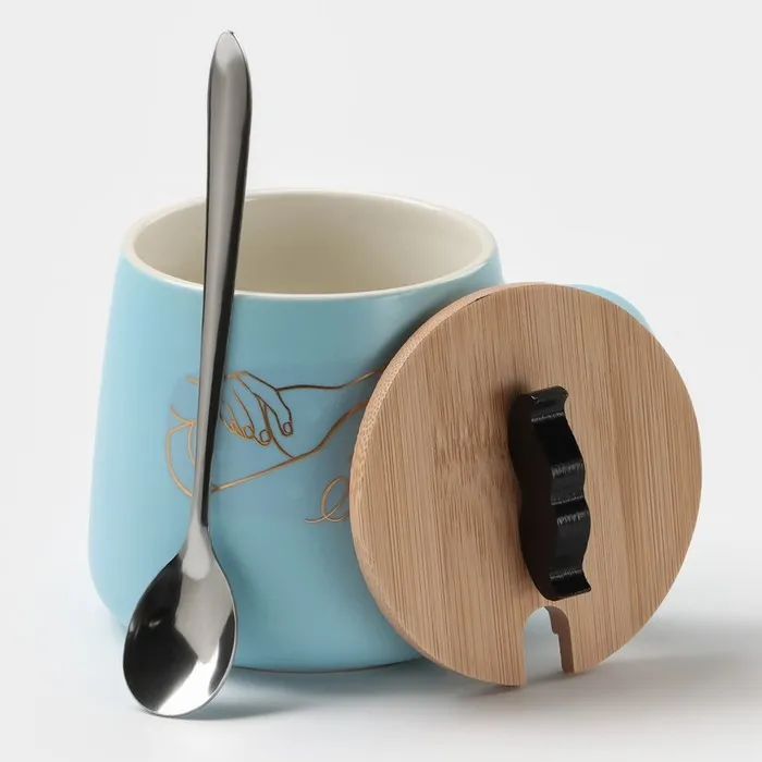 Кружка с ложкой «Мистер», 380 мл, керамика, голубая — Характеристики