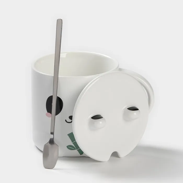 Кружка с ложкой «Панда», 350 мл, керамика, белая — Характеристики
