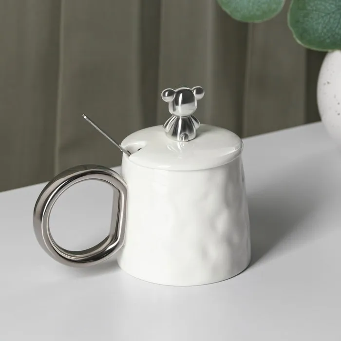 Кружка с ложкой «Стильный мишка», 320 мл, керамика, белая — Характеристики