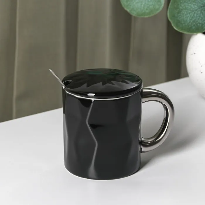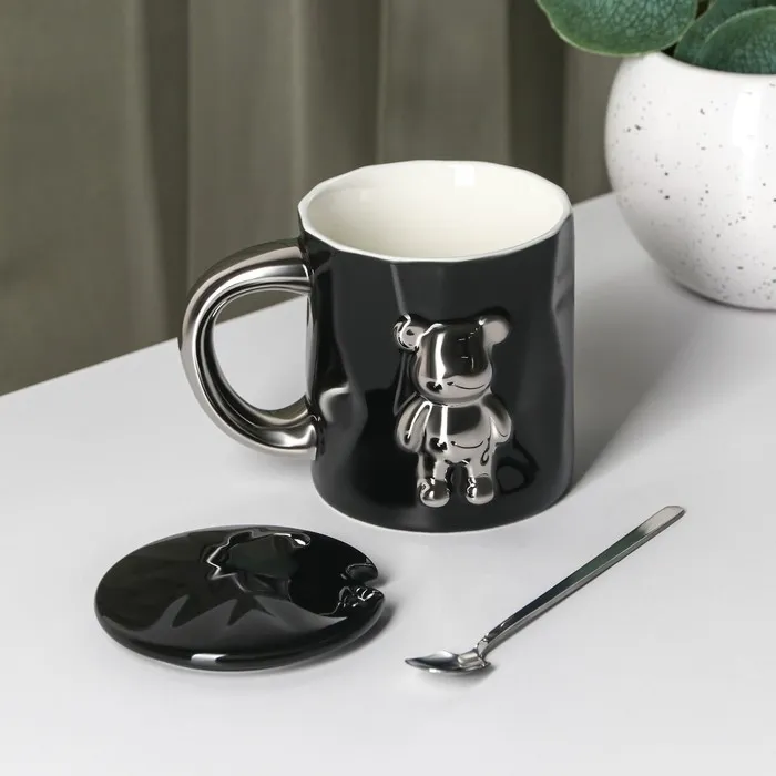 Кружка с ложкой «Стильный мишка», 320 мл, керамика, чёрная — Характеристики
