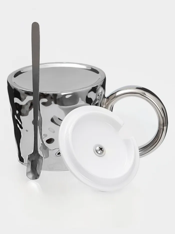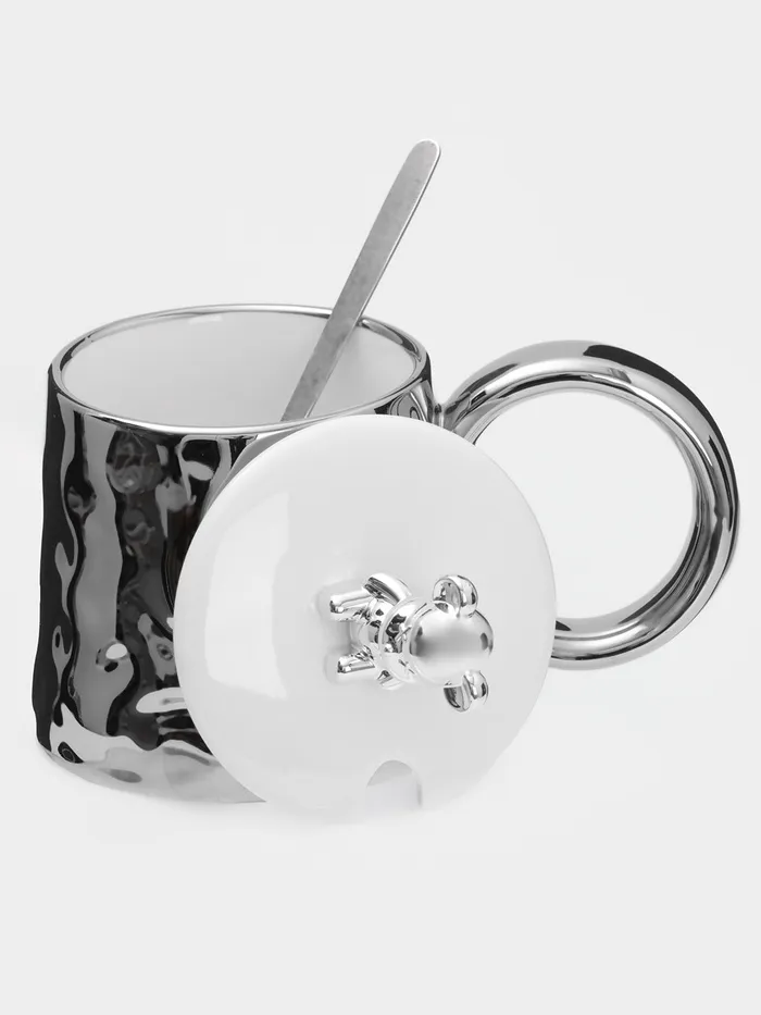 Кружка с ложкой «Стильный мишка», 320 мл, керамика, серебристая — Характеристики