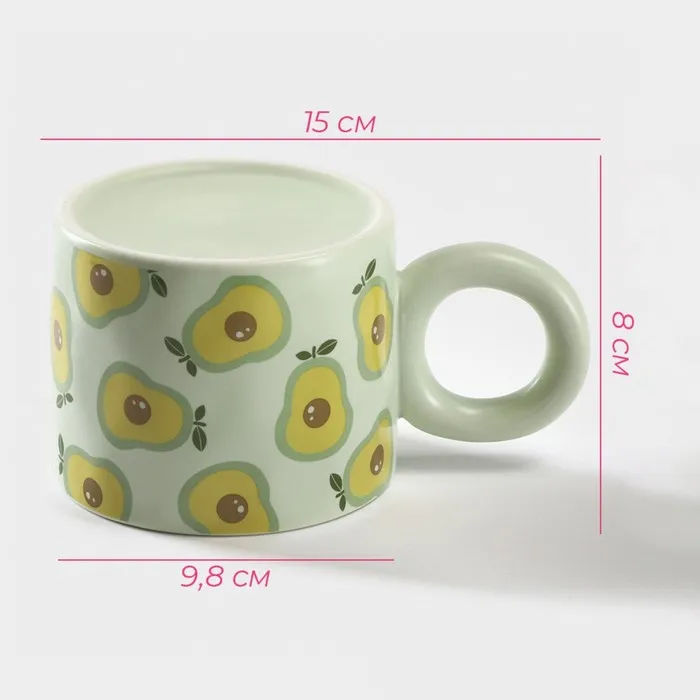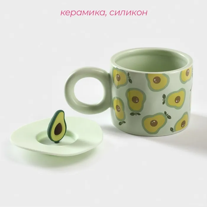 Кружка с силиконовой крышкой Доляна «Авокадо», 350 мл, керамика, зелёная — Характеристики