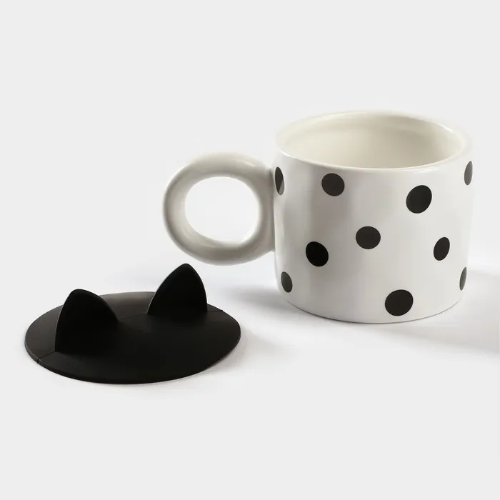 Кружка с силиконовой крышкой «Мяу», 350 мл, керамика, белая, чёрная — Характеристики