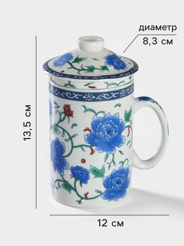 Кружка с ситом «Цветение роз», 300 мл, керамика, белая — Характеристики