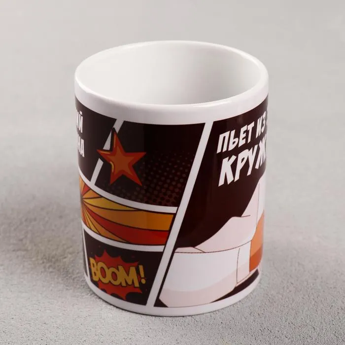 Кружка изготовлена из керамики. Рисунок нанесён методом сублимации, при котором краска проникает в верхний слой изделия, поэтому изображение получается стойким.